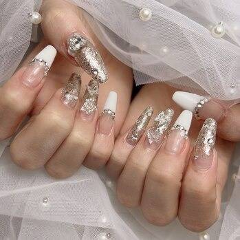 ゴージャスネイル| 伏見区ネイルサロン こんにちは!yukiです^^ 今回は、ホワイト×ゴールドきらきらデザインをご紹介します♪ キラキラネイルは、光を反射するラメやストーンを使い、指先を華やかに演出する人気のデザインシンプル派からゴー…
