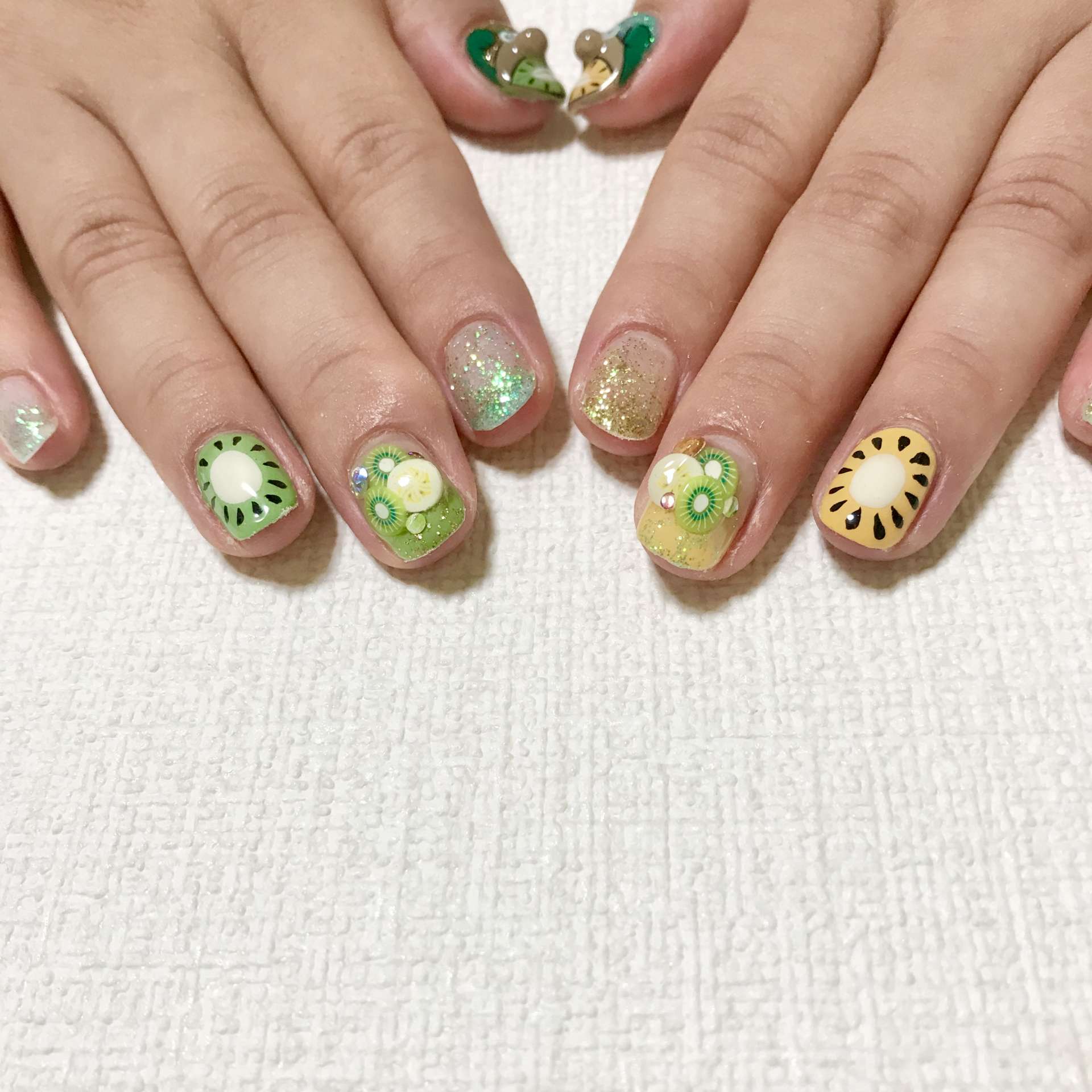 親指以外もフレッシュでみずみずしいキウイを表現。