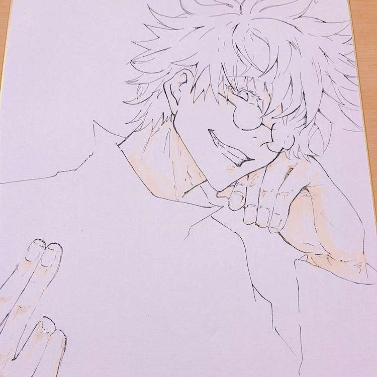 服はシワを表現するために、紙の白、グレー2色、黒で表現しました!❤