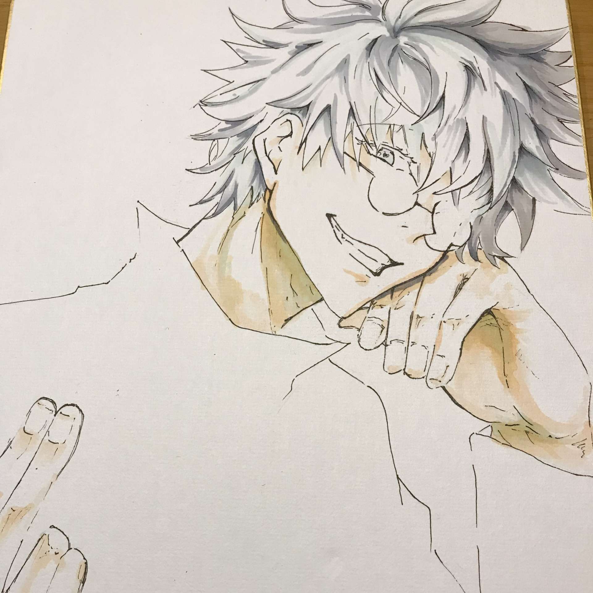 呪術廻戦五条悟のイラストに挑戦?!|伏見区ネイルサロン