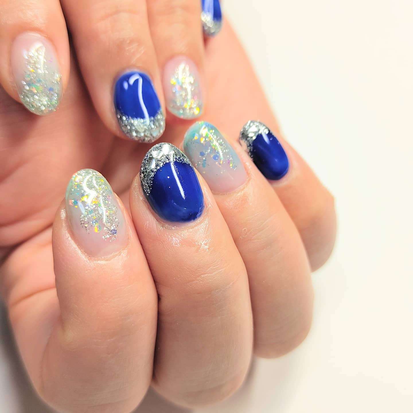 ブルーのガラスフレンチは涼し気な雰囲気になるので夏にオススメ♡♡手が透き通って見えるので美肌に見えますよ!