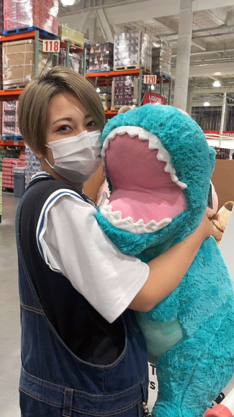 最後に 私の最近の1枚。 娘にサプライズの恐竜ちゃんを買いました(*^^*) デカすぎて寝室に毎日持っていくのが大変ですが、抱っこして寝てる娘を見て