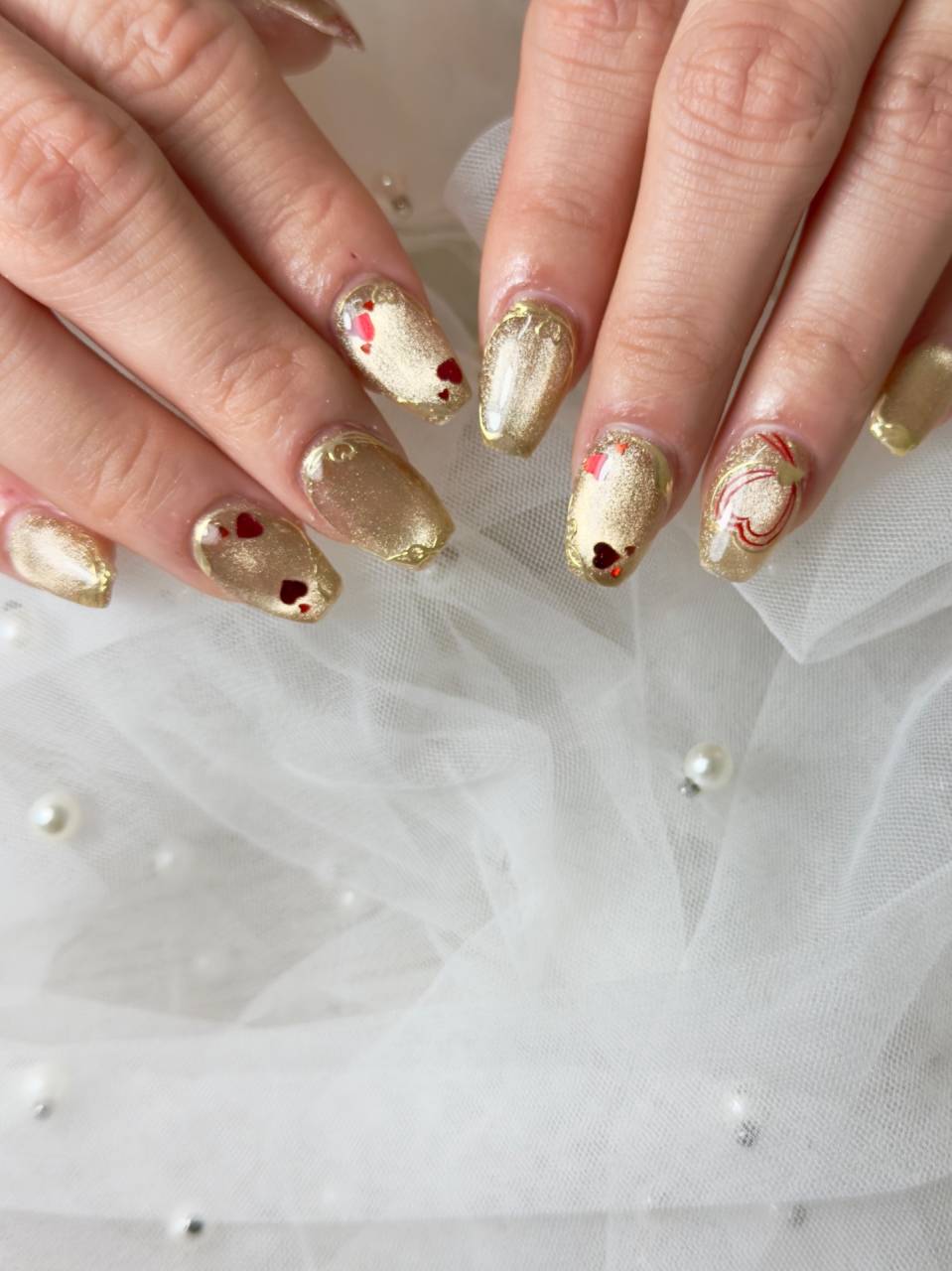 今回はお正月にも使える可愛いゴールドマグネットネイルをご紹介します💓